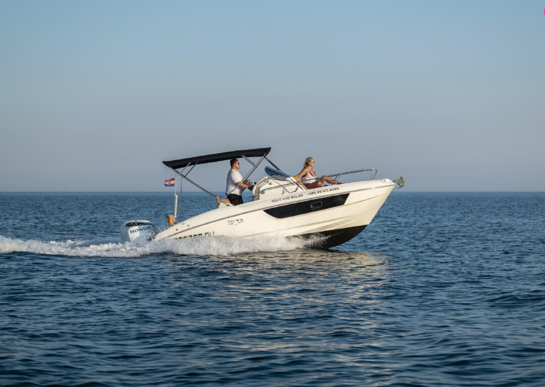 - Full day rent is considered from 9:00 – 17:00 or from 10:00 – 18:00 o’clock – we kindly ask that all guests observe punctuality, as every moment on the water is valuable / Cjelodnevni najam plovila podrazumijeva se od 9:00 – 17:00 ili od 10:00 – 18:00 sati – molimo goste da se pridržavaju točnosti, jer je svaki trenutak na moru vrijedan.