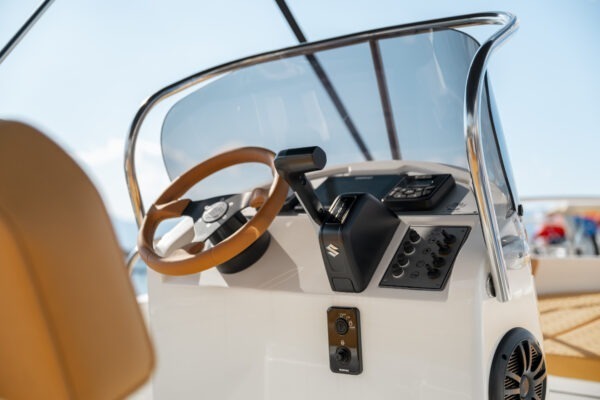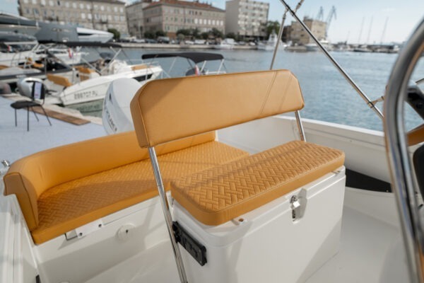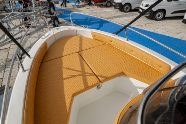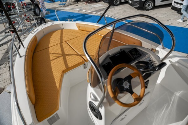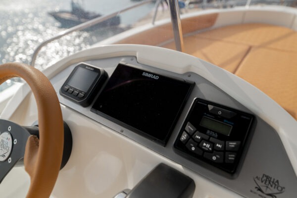 bijela boja trupa | navigacijska svjetla | volan | upravljačka ploča s prekidačima | vodonepropusna električna instalacija | električna sklopka | električna truba | kaljužna pumpa | plinski amortizeri i gumene brtve na poklopcima otvora spremišta | rukohvat od inoxa | inox ljestve na krmi | 4 bitve za privez | set vanjskih jastuka | inox odzračnici | kormilarsko sjedalo | inox naslon s fiksiranjem u 5 točaka